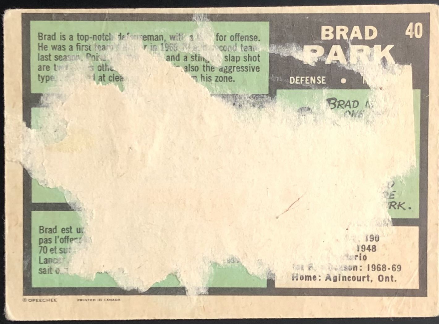 Card #40, significant paper loss on back OPC, NHL, hockey, vintage, hall of fame