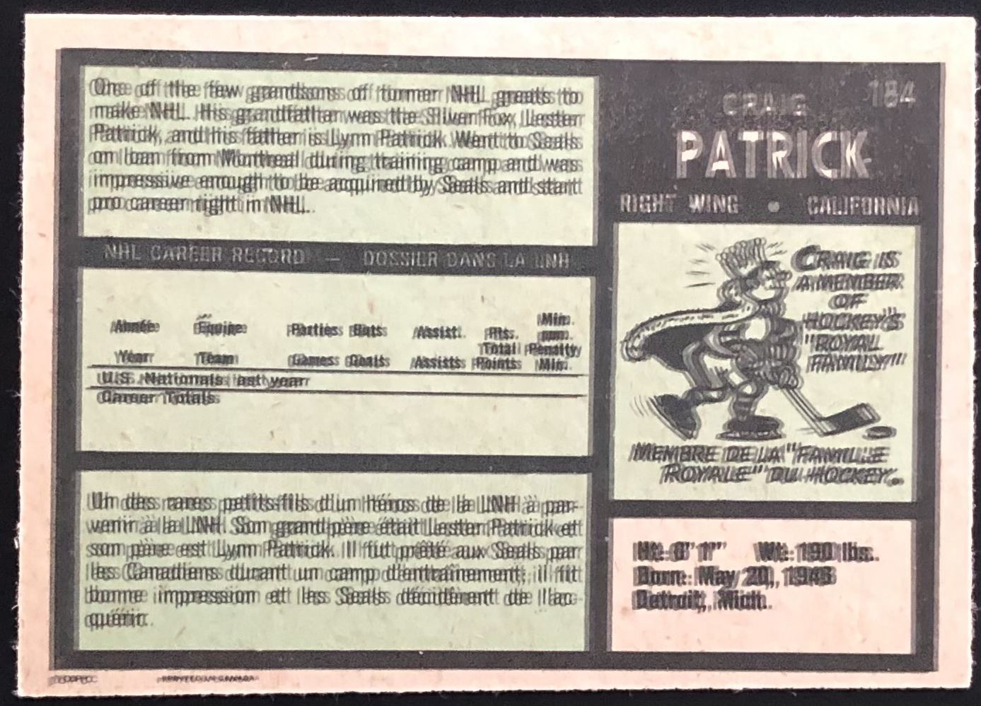 Card #184 NHL, hockey, vintage, OPC, rookie
