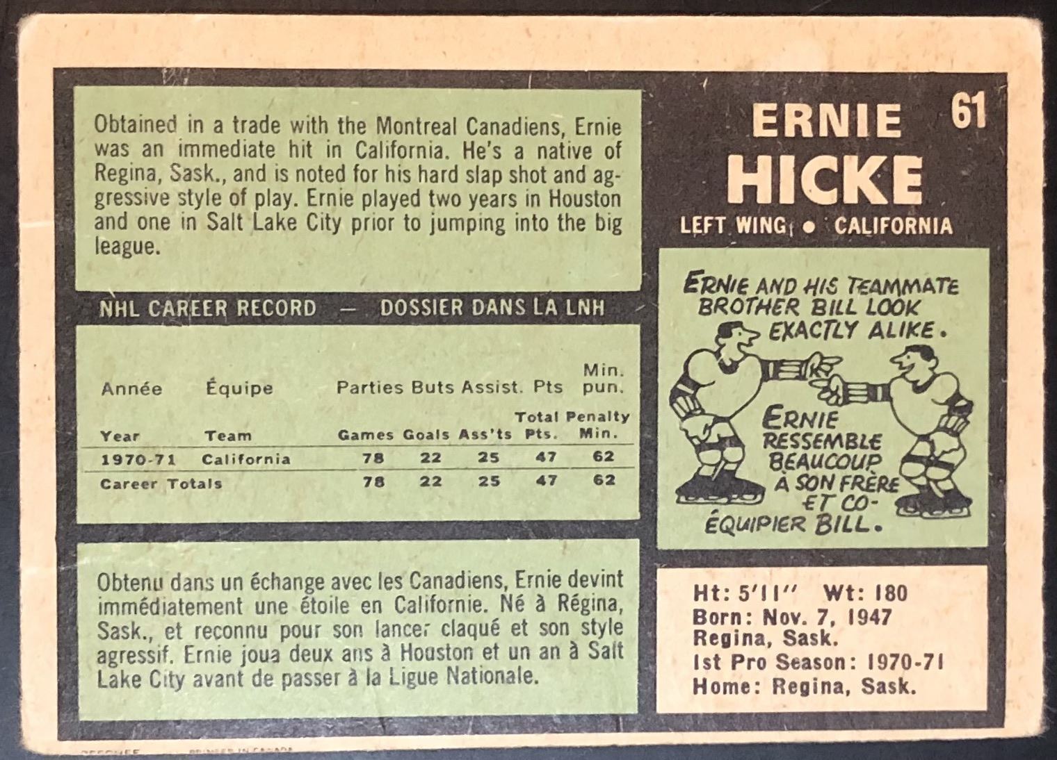 Card #61 NHL, hockey, OPC, vintage, rookie