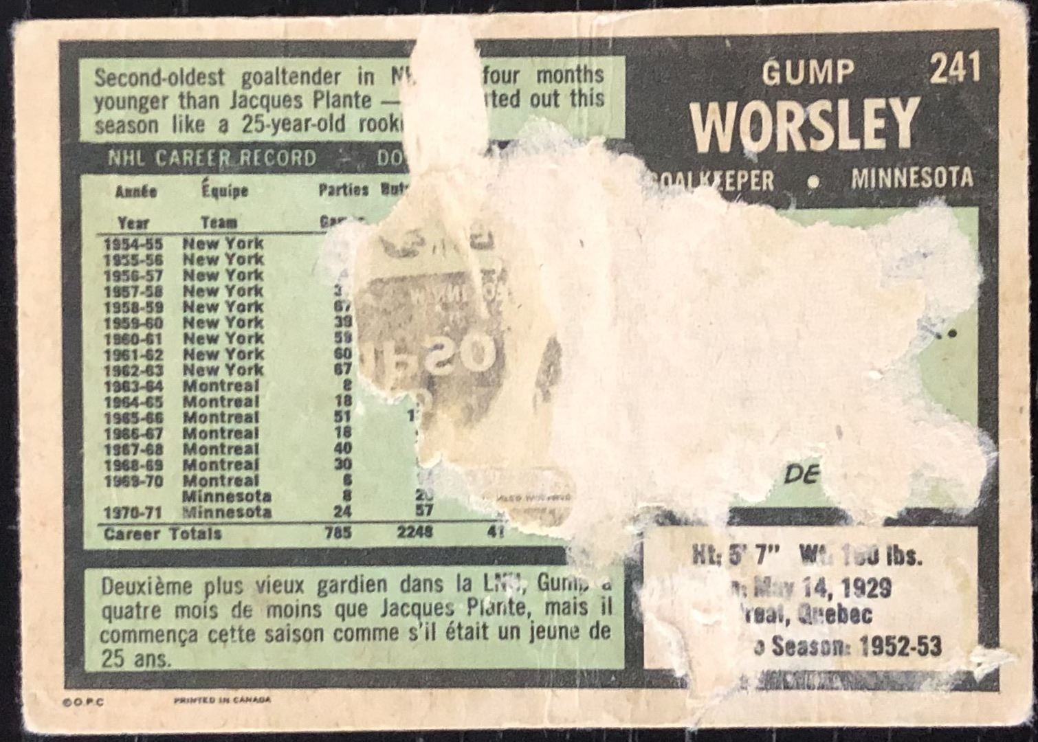 Card #241 filler quality (creasing, paper loss on back) vintage