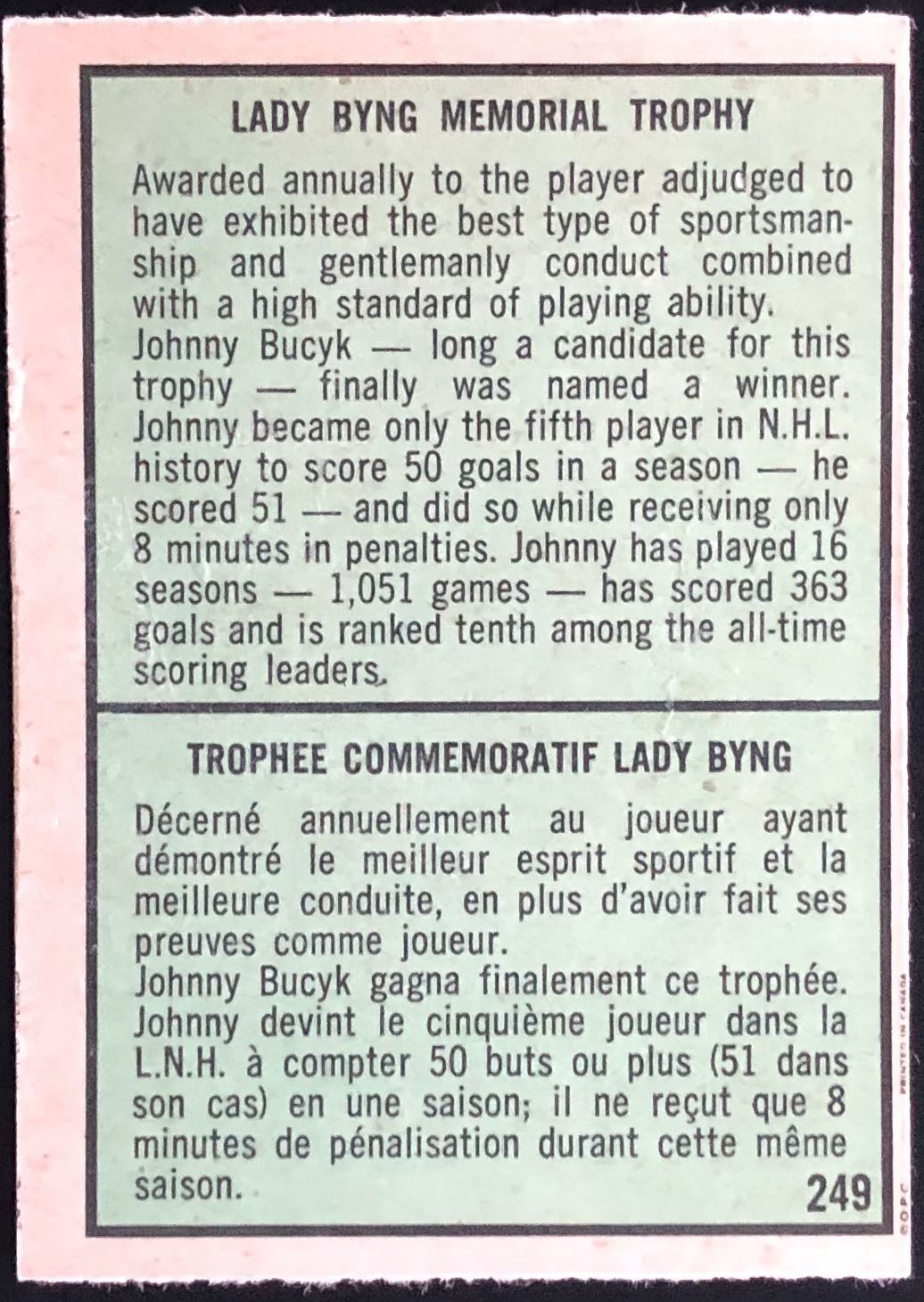 Card #249 NHL, hockey, vintage, OPC, hall of fame