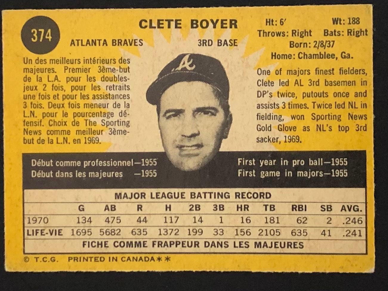 Card #374 baseball, vintage