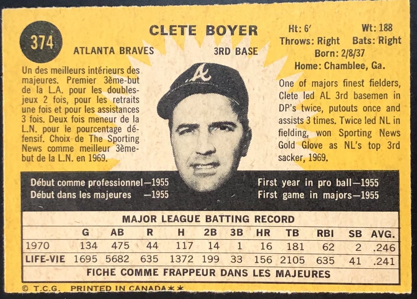 Card #374 MLB, baseball, vintage, OPC