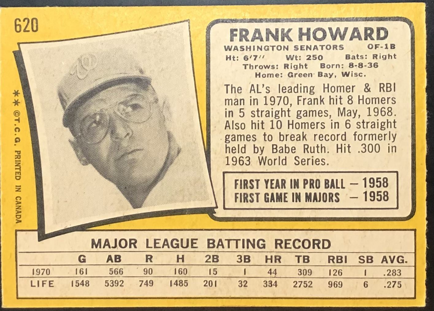 Card #620 MLB, baseball, vintage, OPC, hall of fame