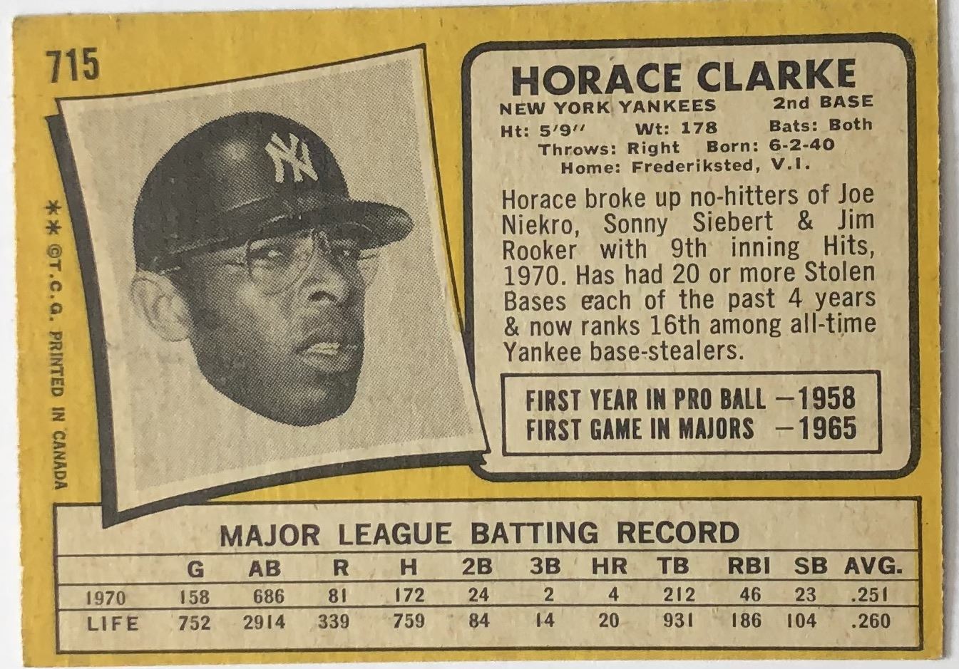 Card #715 MLB, baseball, OPC, vintage
