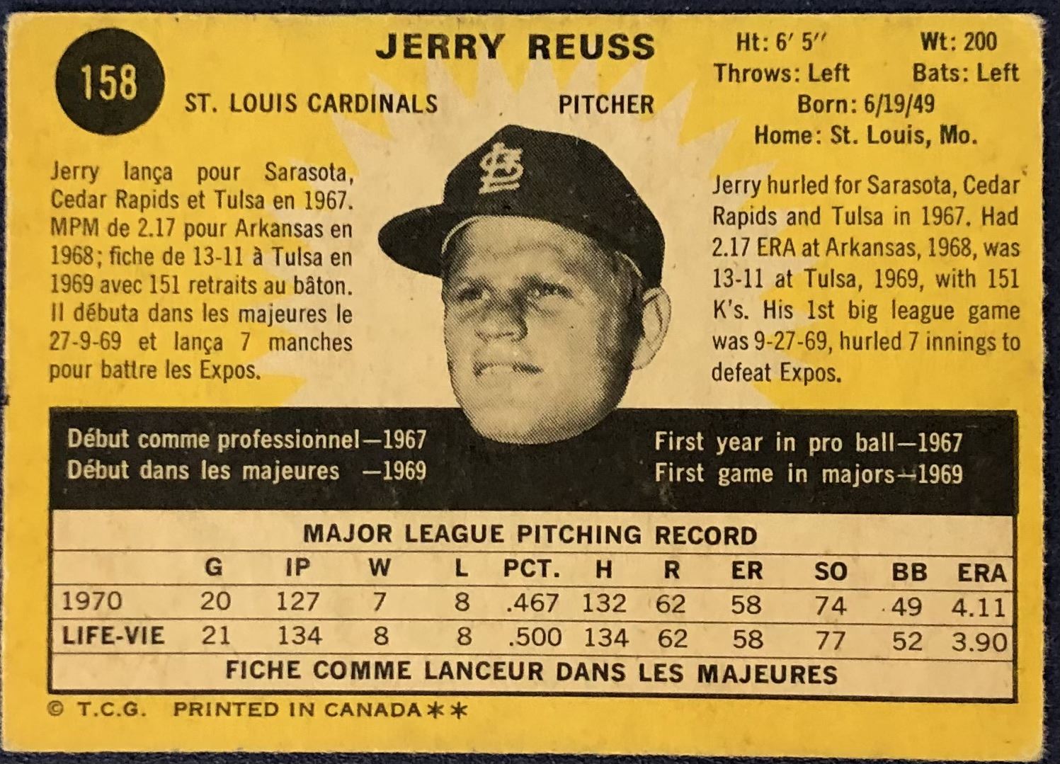 Card #158 MLB, baseball, vintage, OPC, rookie