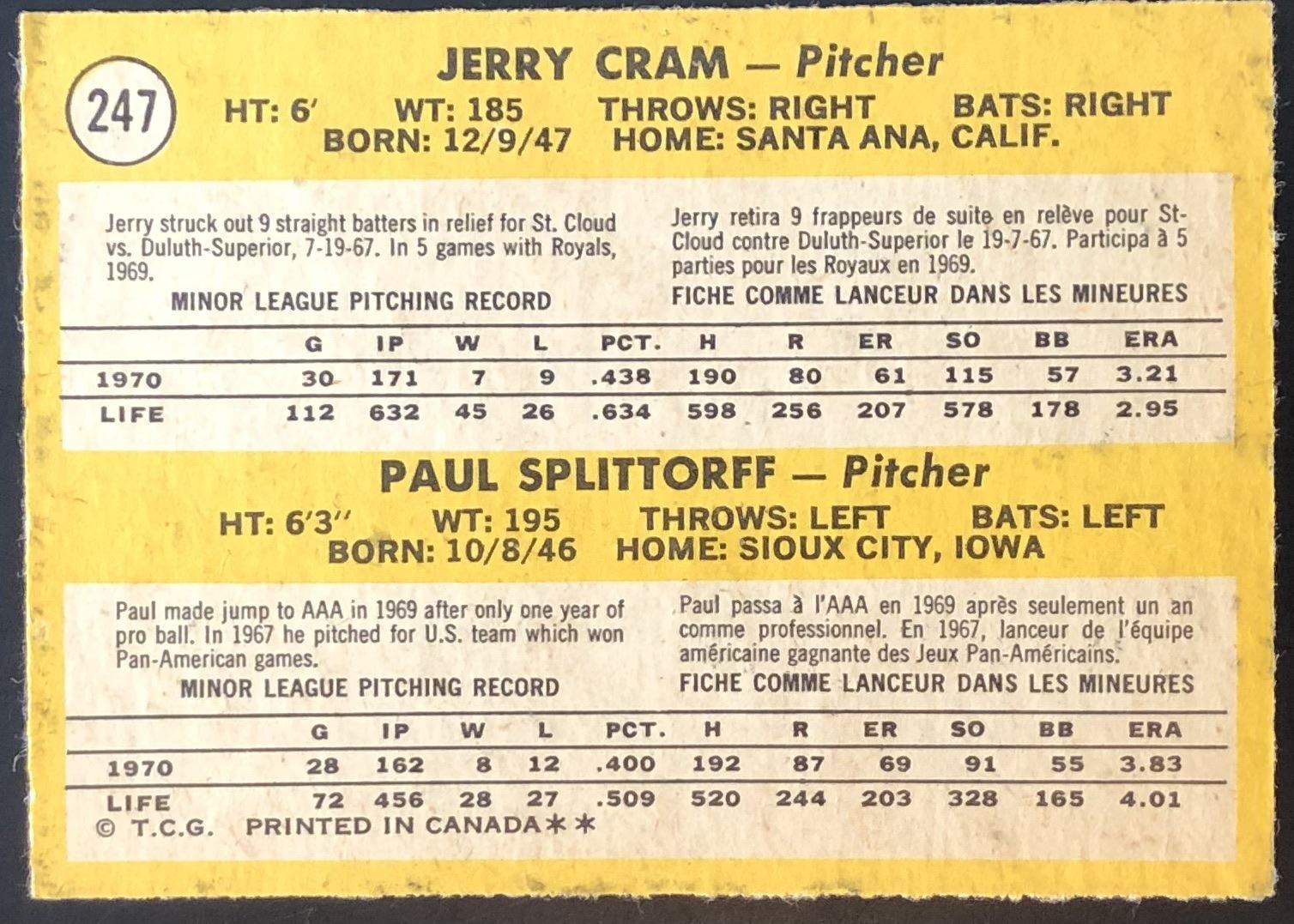Card #247 OPC, vintage, MLB, baseball, rookie