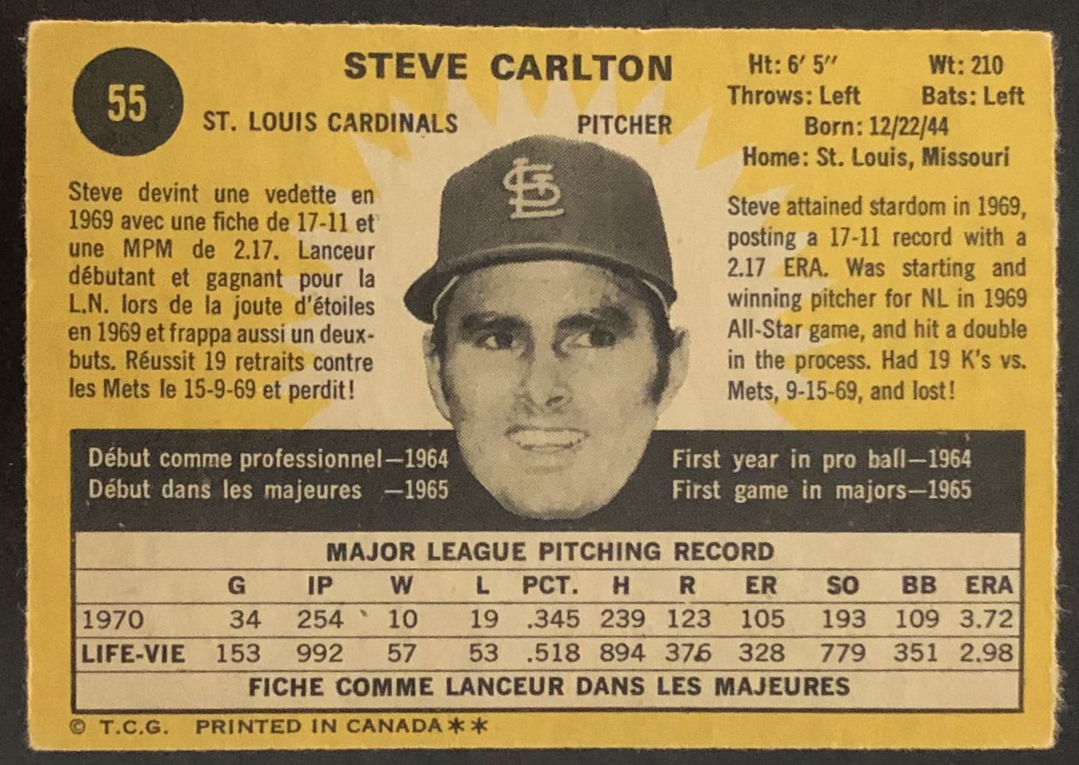 Card #55 MLB, baseball, OPC, vintage, hall of fame