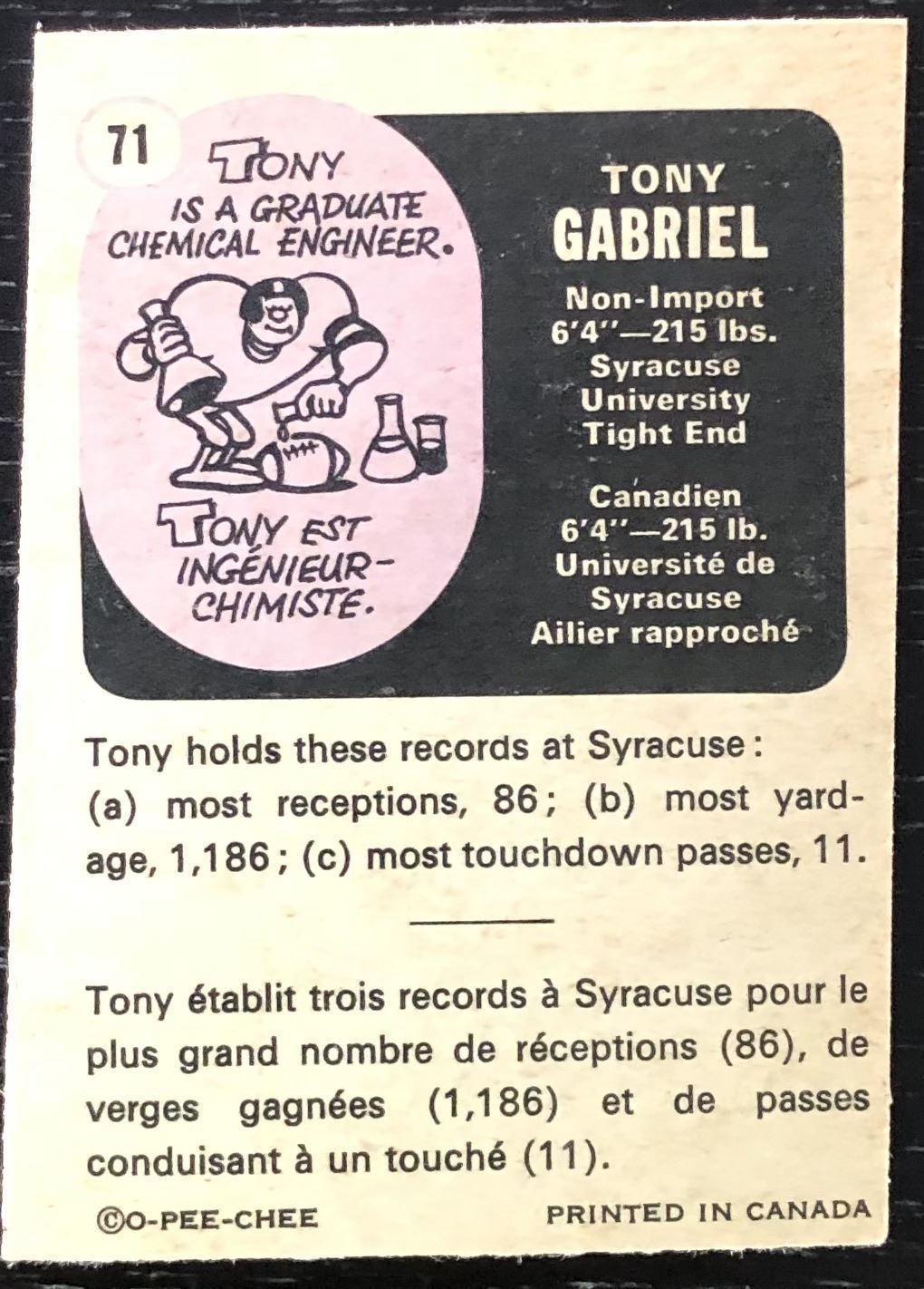 Card #71 CFL, football, vintage, hall of fame, OPC