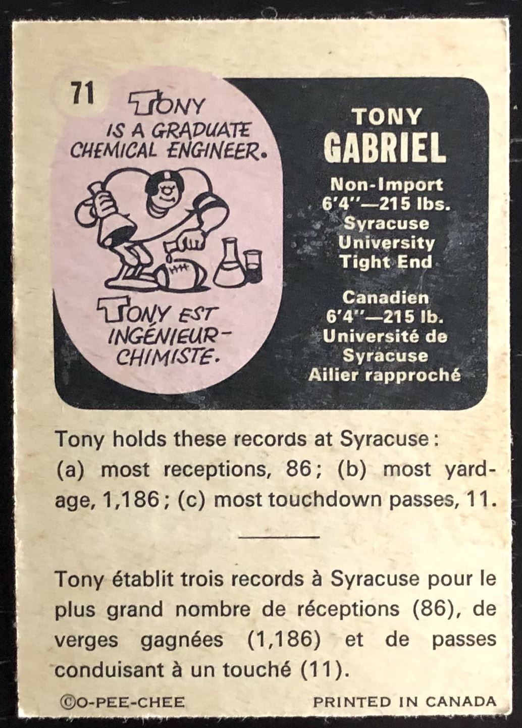 Card #71 CFL, football, vintage, hall of fame, OPC