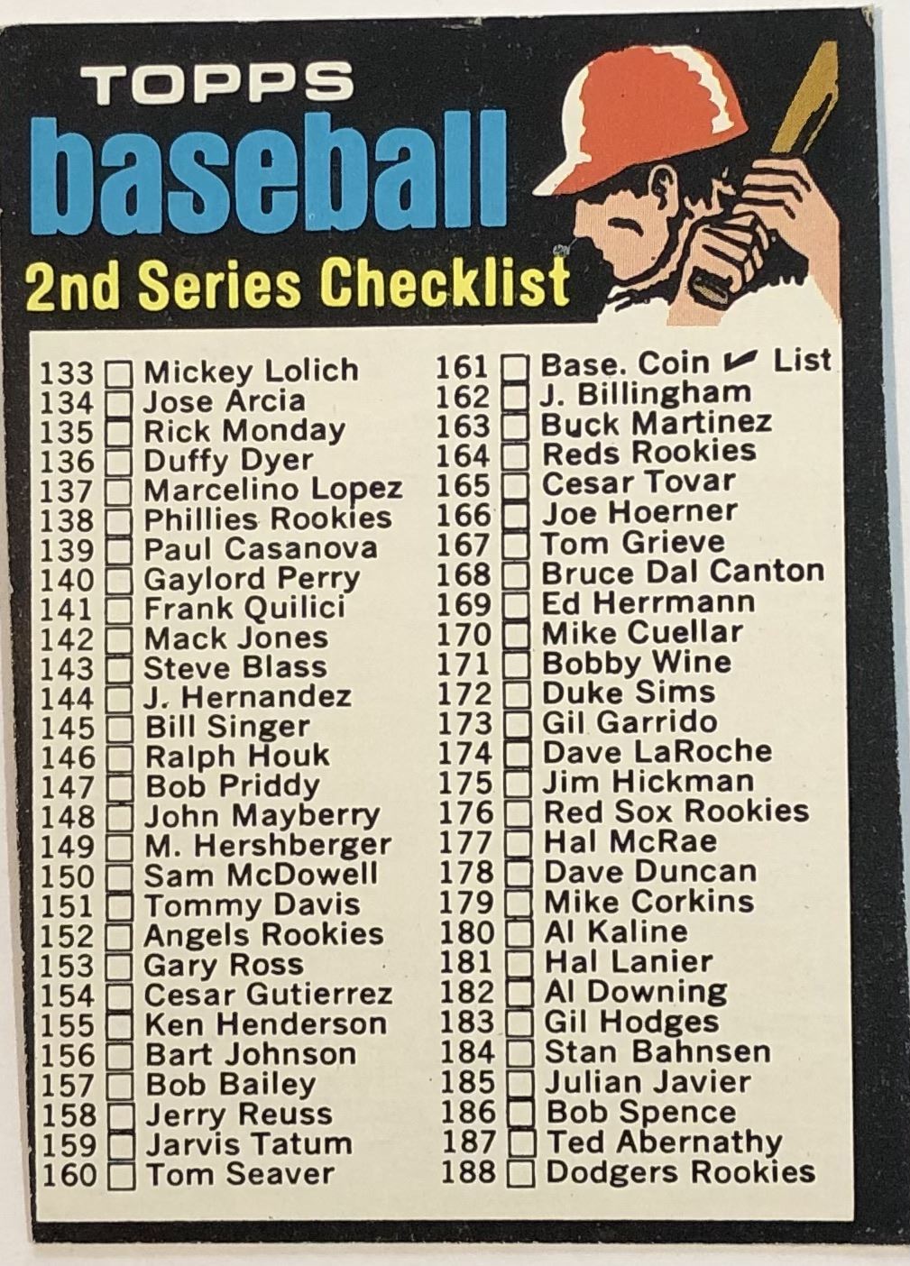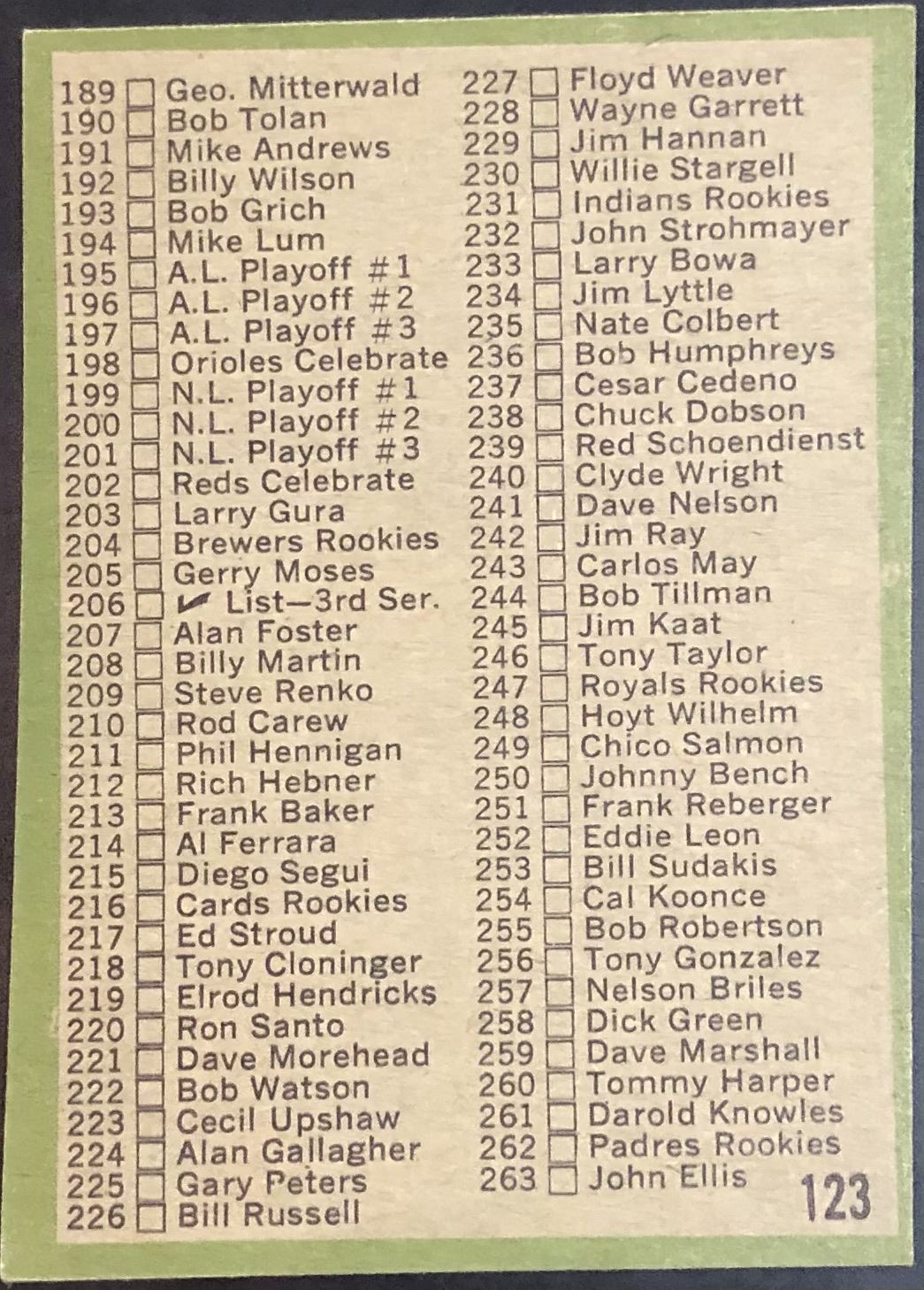 Card #123, number on card back corrected in later versions (centered) MLB, baseball, vintage