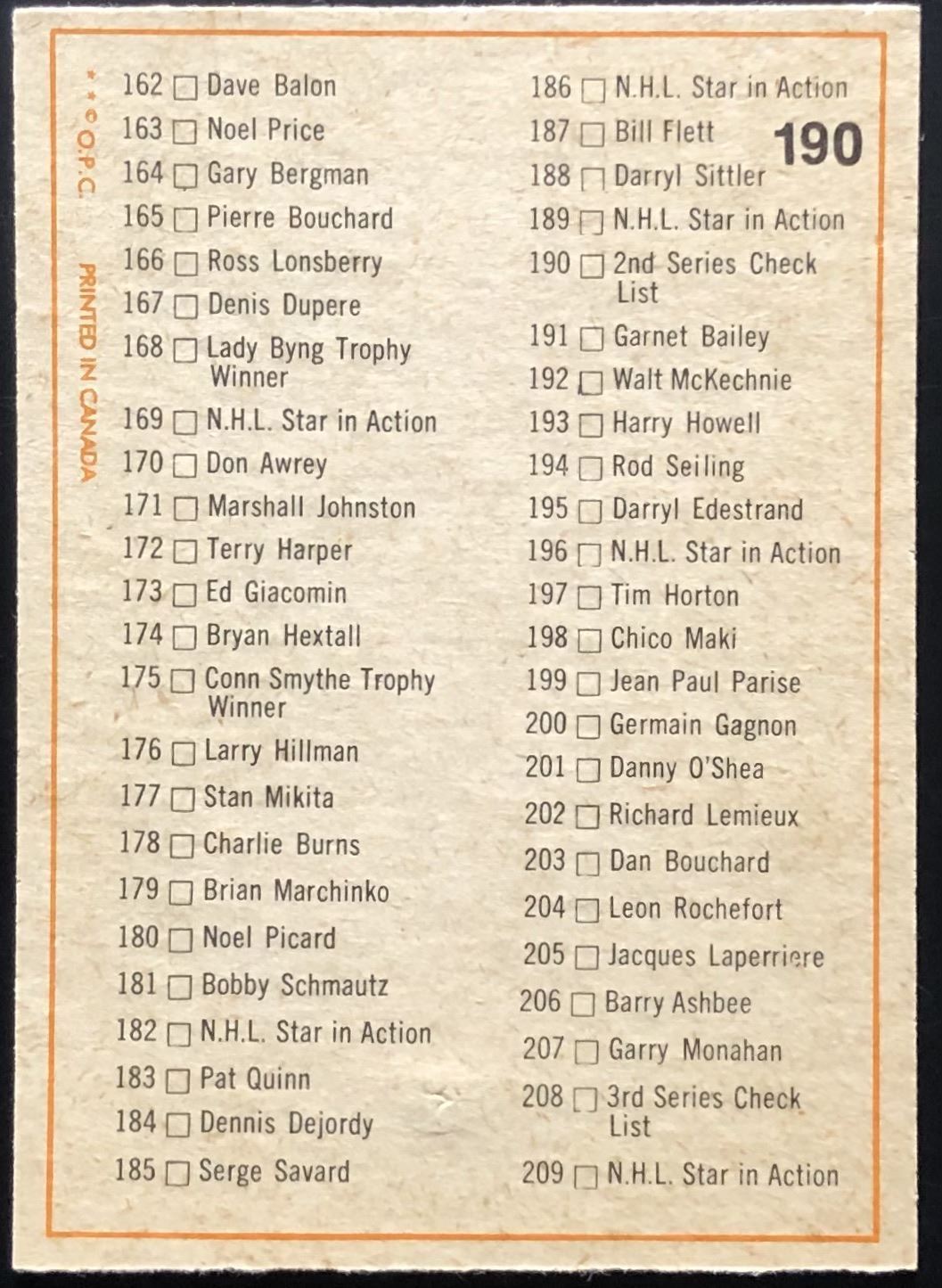 Card #190 (corected version) OPC, vintage, NHL, hockey
