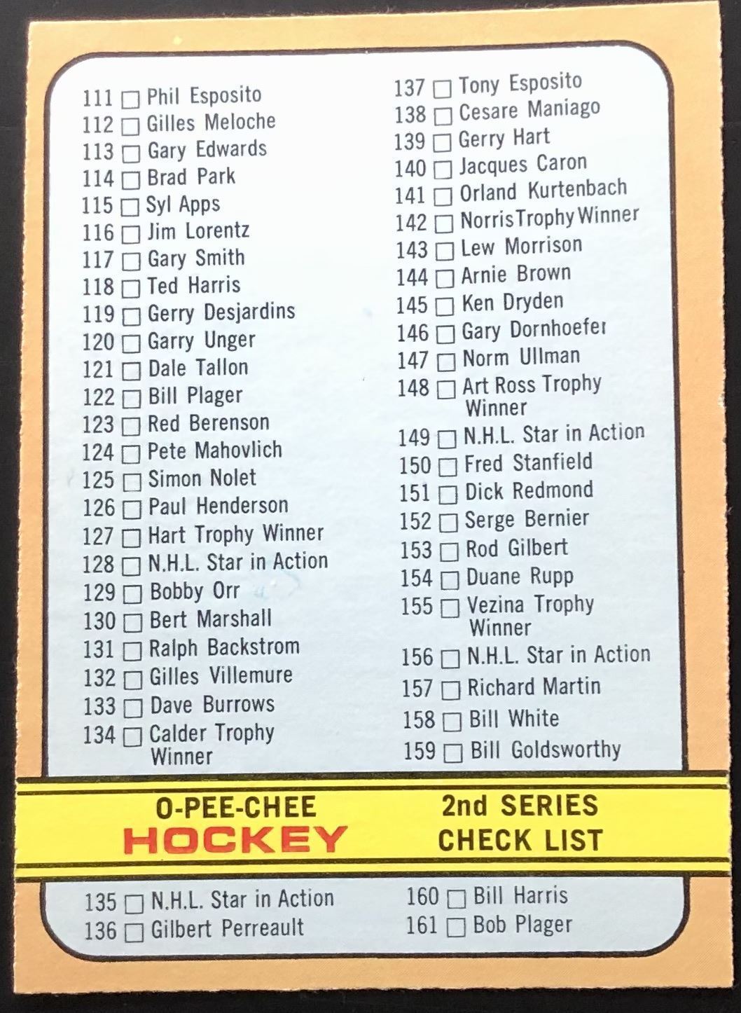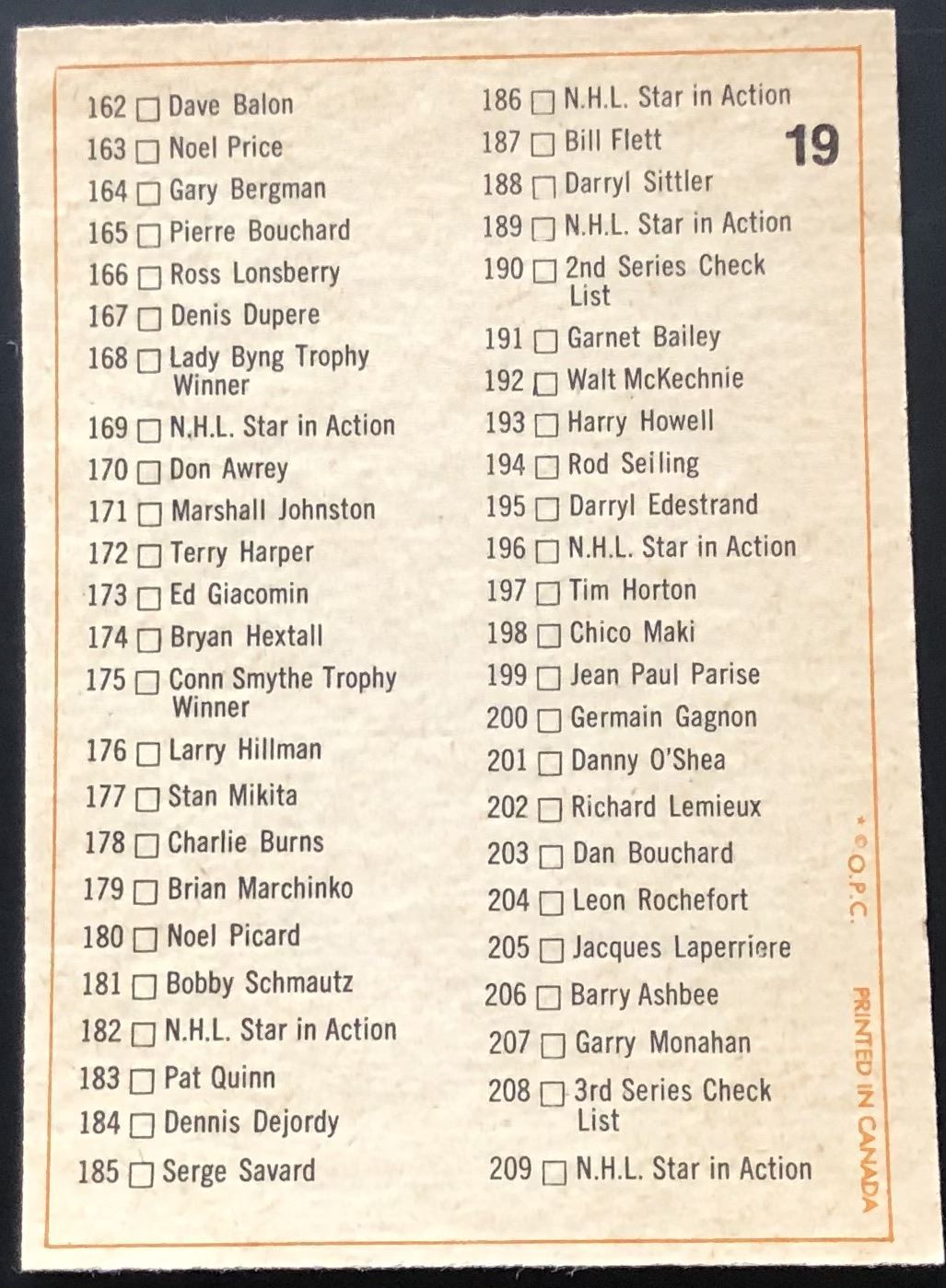 Card #19, subsequent verions corrected to card #190 NHL, hockey, OPC, vintage