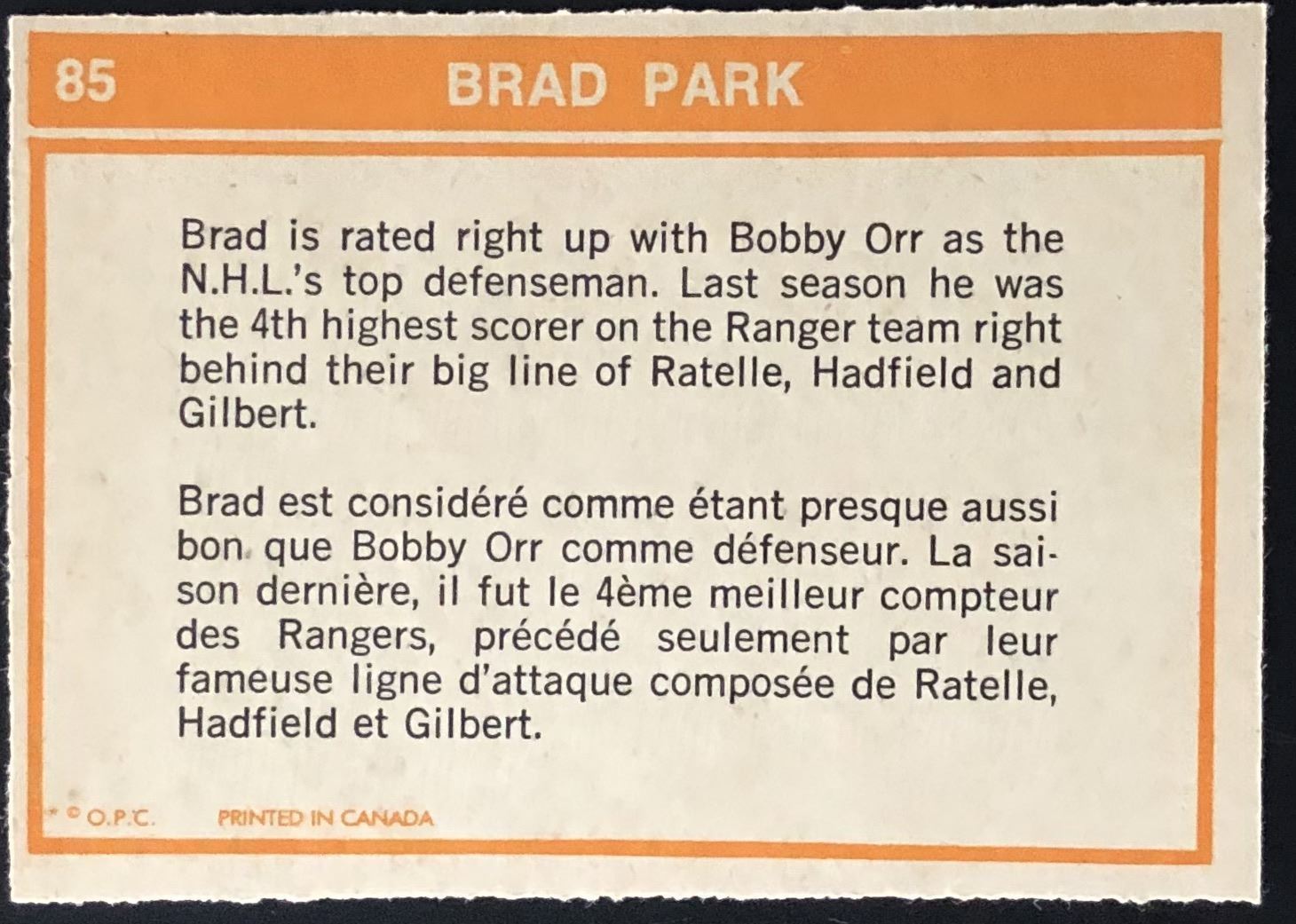 Card #85 NHL, hockey, vintage, OPC, hall of fame