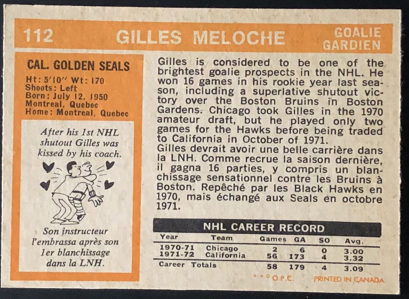 Card #112 NHL, hockey, vintage, OPC, rookie