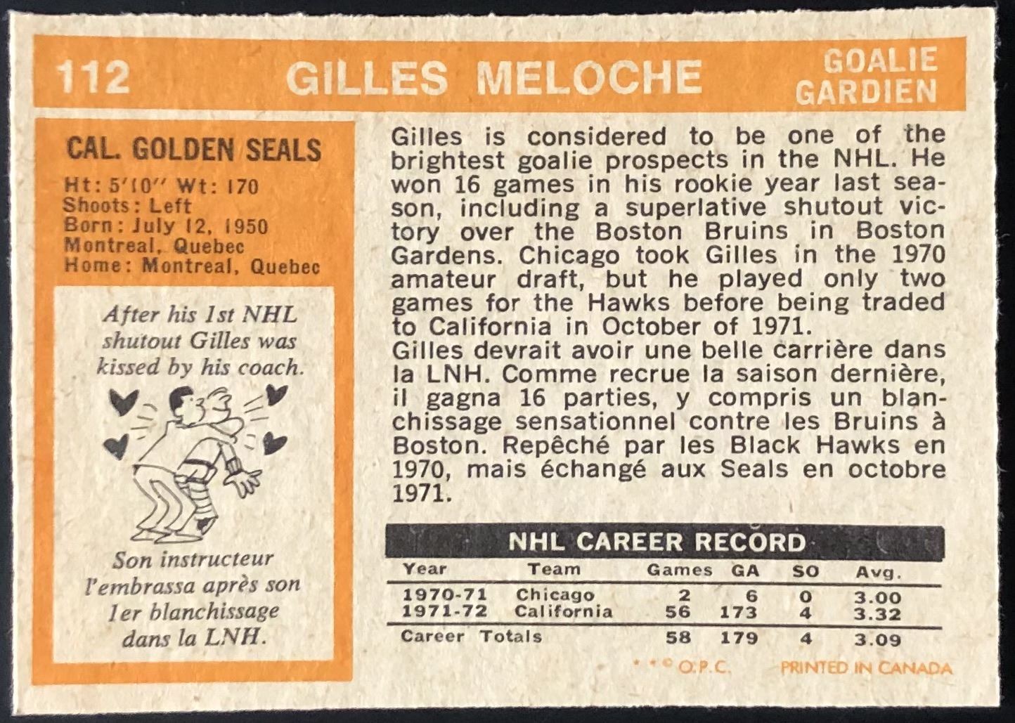 Card #112 OPC, vintage, NHL, hockey, rookie