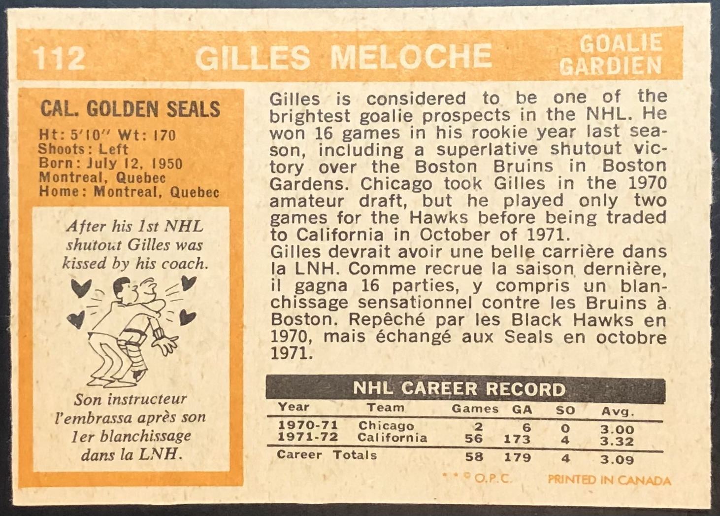 Card #112 NHL, hockey, OPC, vintage, rookie