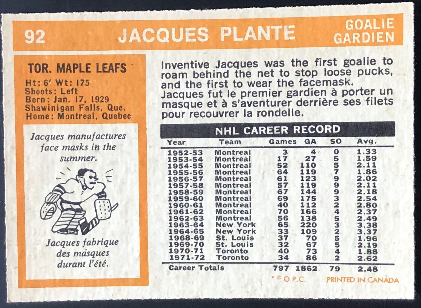 Card #92 NHL, hockey, OPC, vintage, hall of fame