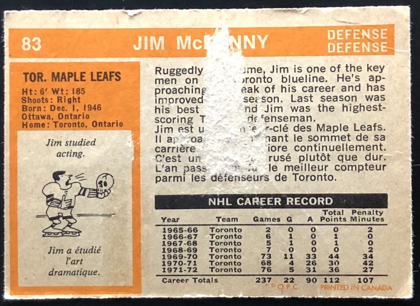 Card #83 paper loss on back NHL, hockey, vintage, OPC