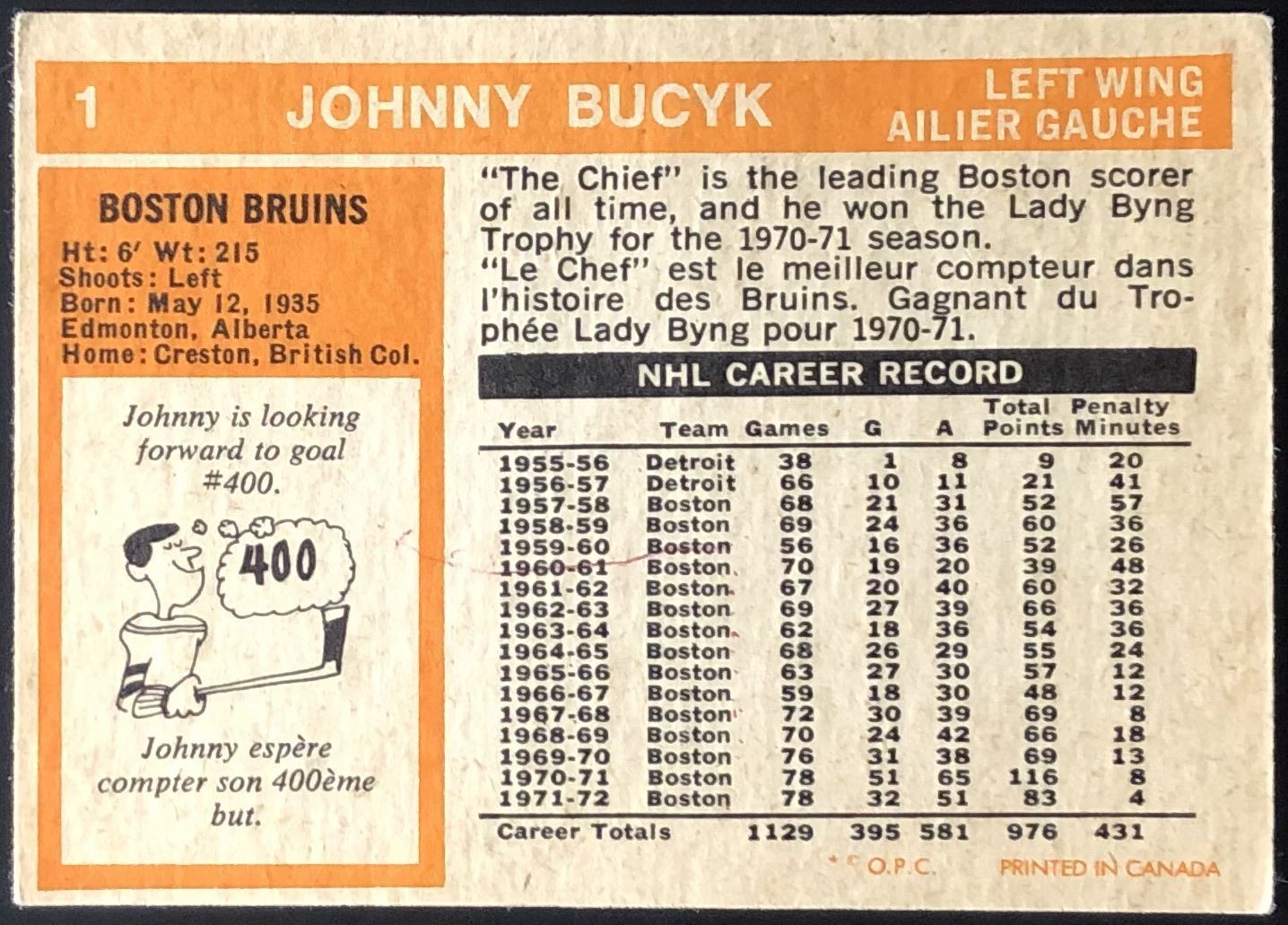 Card #1 OPC, vintage, NHL, hockey, hall of fame