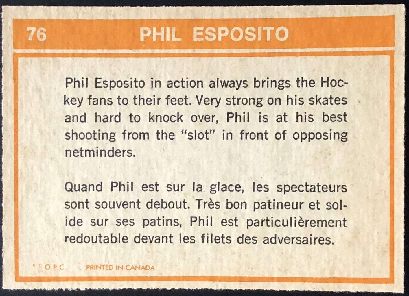 Card #76 OPC, vintage, NHL, hockey, hall of fame