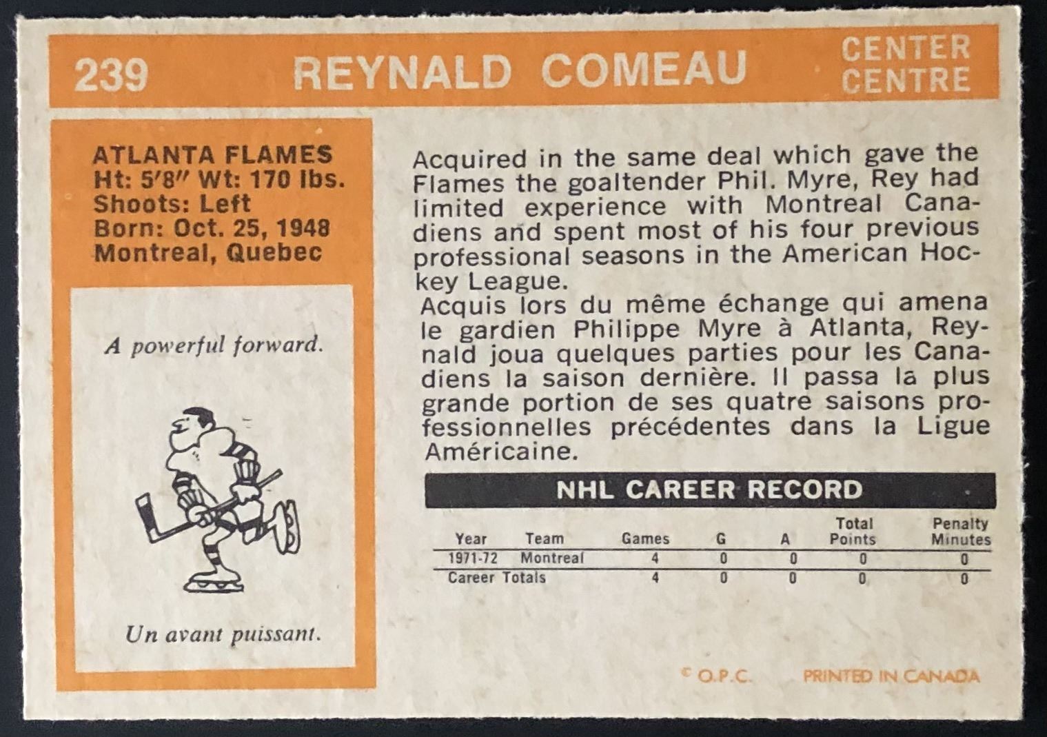 Card #239 NHL, hockey, vintage, OPC, rookie