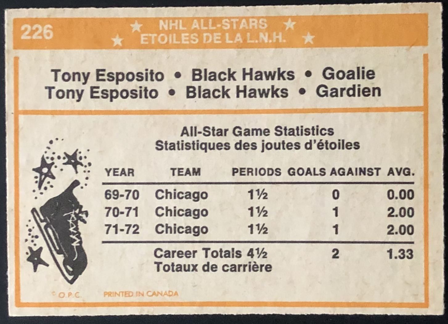 Card #226 NHL, hockey, vintage, OPC, hall of fame