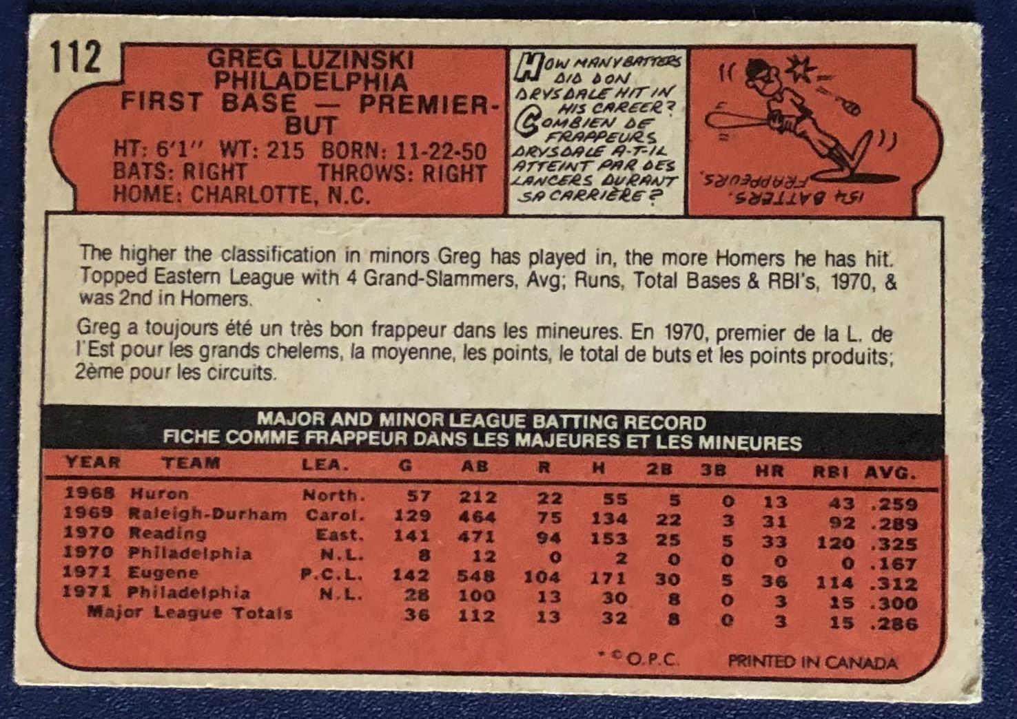 Card #112 vintage, MLB, baseball, rookie, OPC