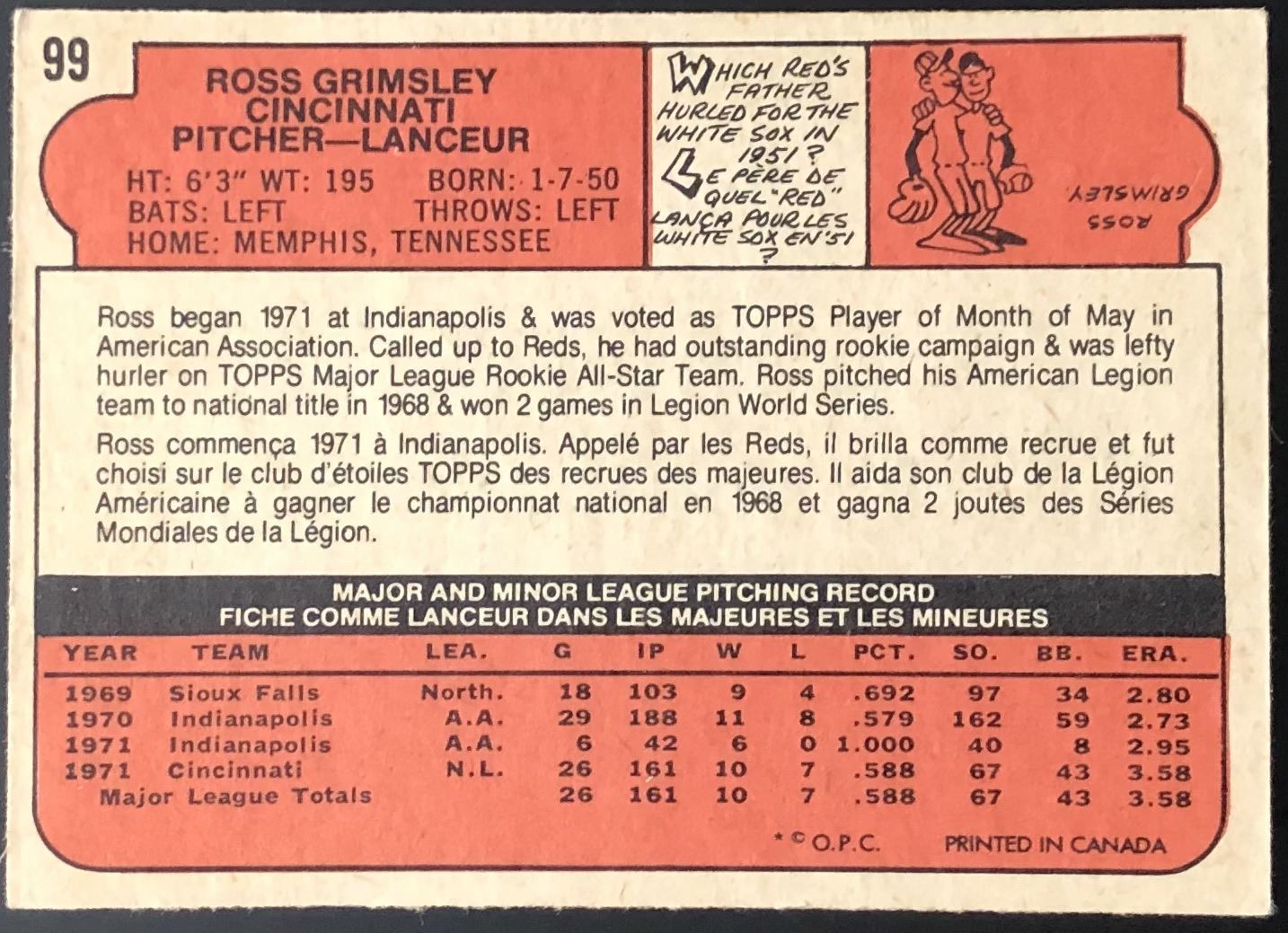 Card #99 MLB, baseball, OPC, vintage, rookie