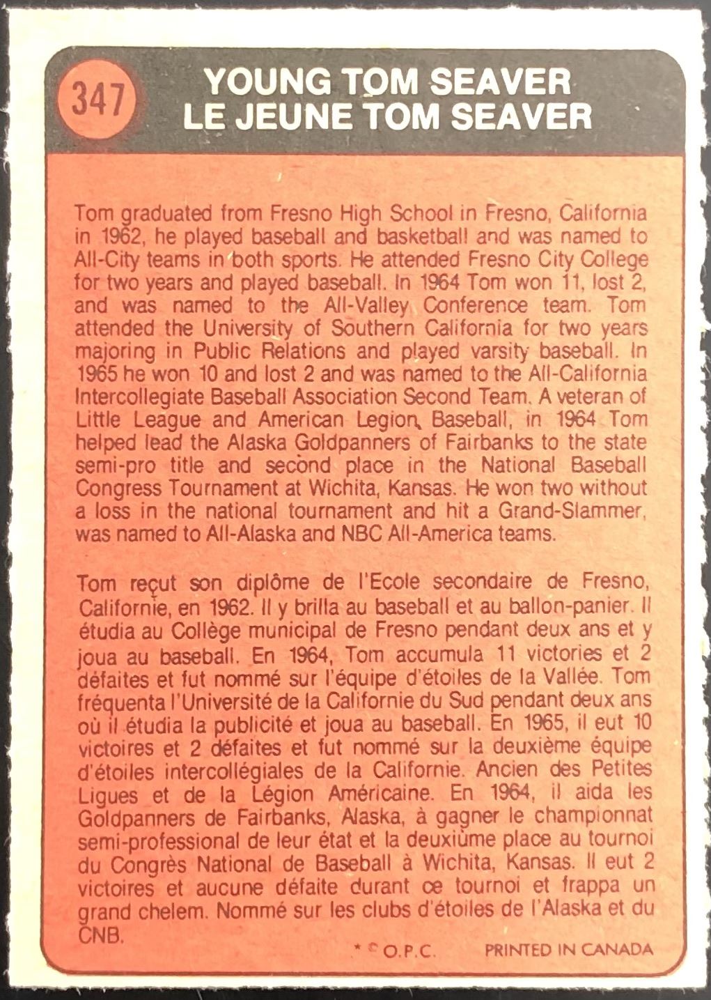 Card #347 MLB, baseball, OPC, vintage, hall of fame
