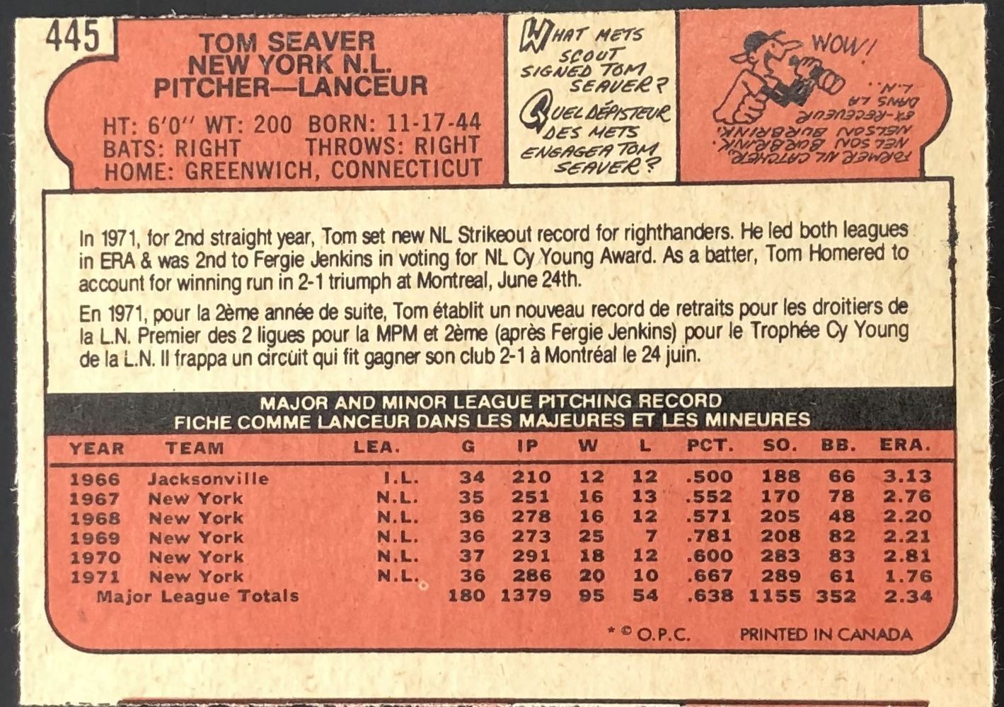 Card #445 OPC, vintage, MLB, baseball, hall of fame