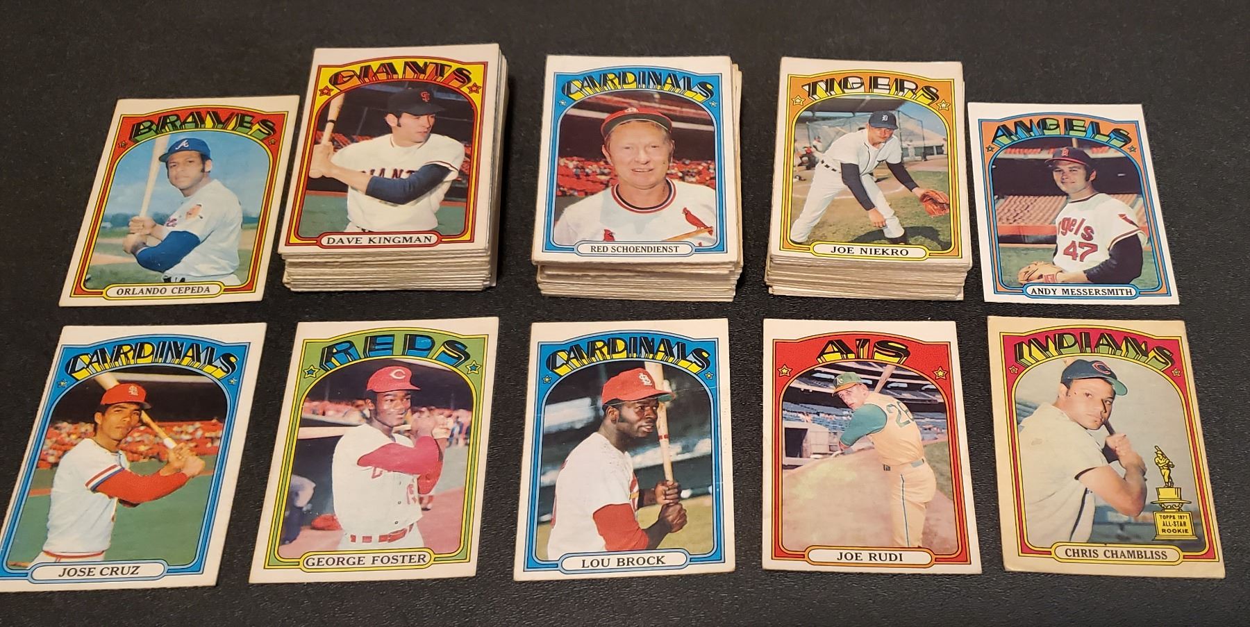 This lot consists of 130 cards from the 1972 O-Pee-Chee baseball set, cards grade VG to EX, some better, few worse. Includes stars, rookies, etc. Some duplicates.