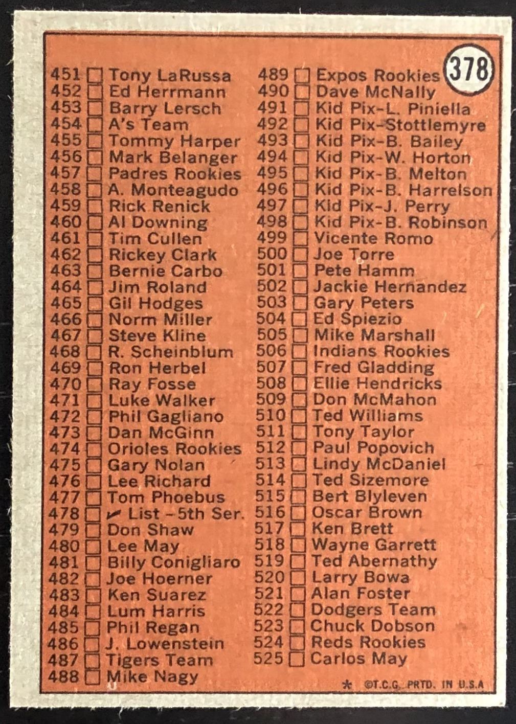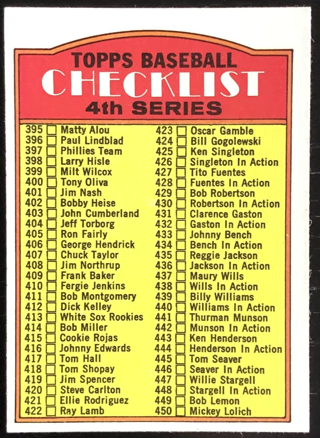 1972 TOPPS 4th SERIES CHECKLIST