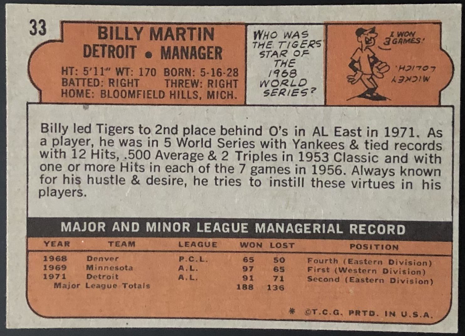 Card #33 MLB,baseball, vintage