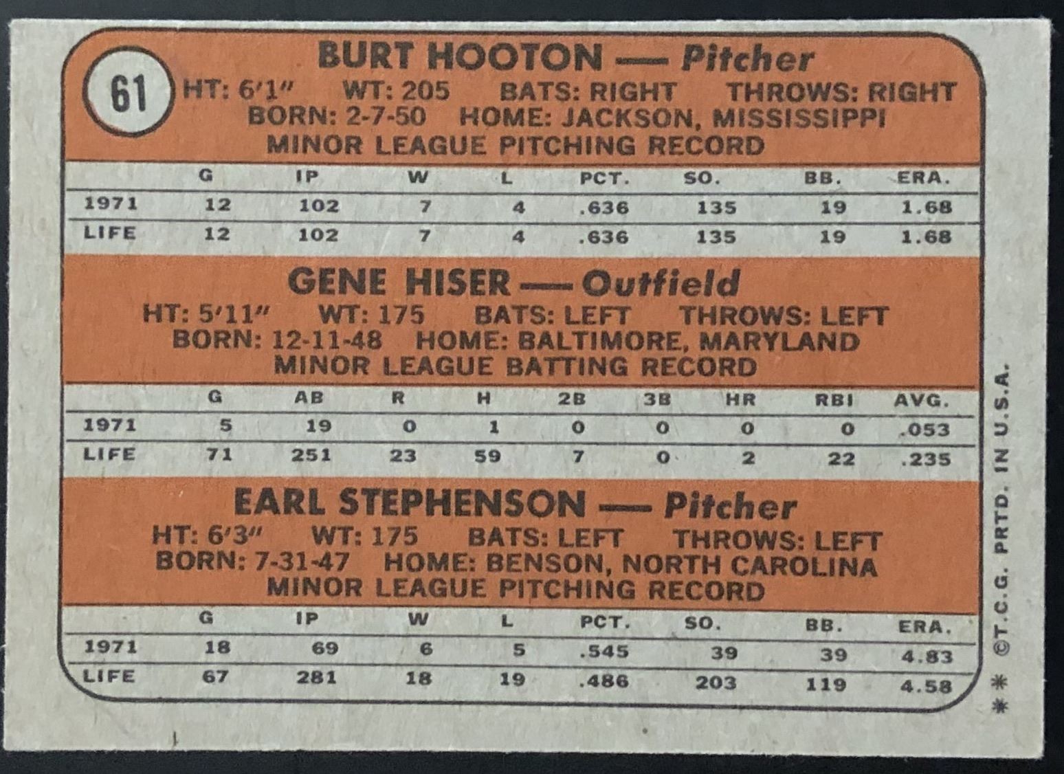 1972 TOPPS BURT HOOTON ROOKIE CARD