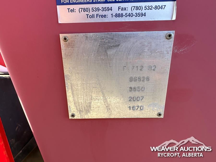 Specifications: ENCLOSED CAB, 10 FT. X 8 FT 4 IN. DECK, 2007 FERRARI F.712 A2 BOOM, HYD STABILIZERS, 1,000 LITRE WATER TANK, PINTLE HITCH