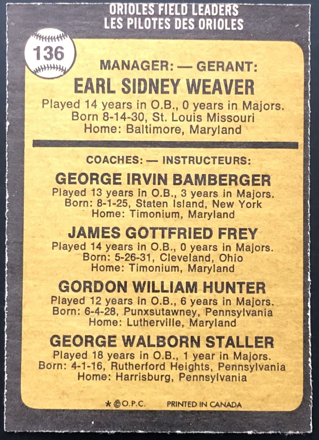 Card #136 MLB, baseball, vintage, OPC, hall of fame