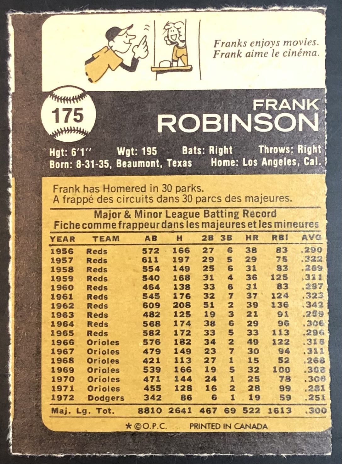 Card #175 MLB, baseball, vintage, OPC, hall of fame