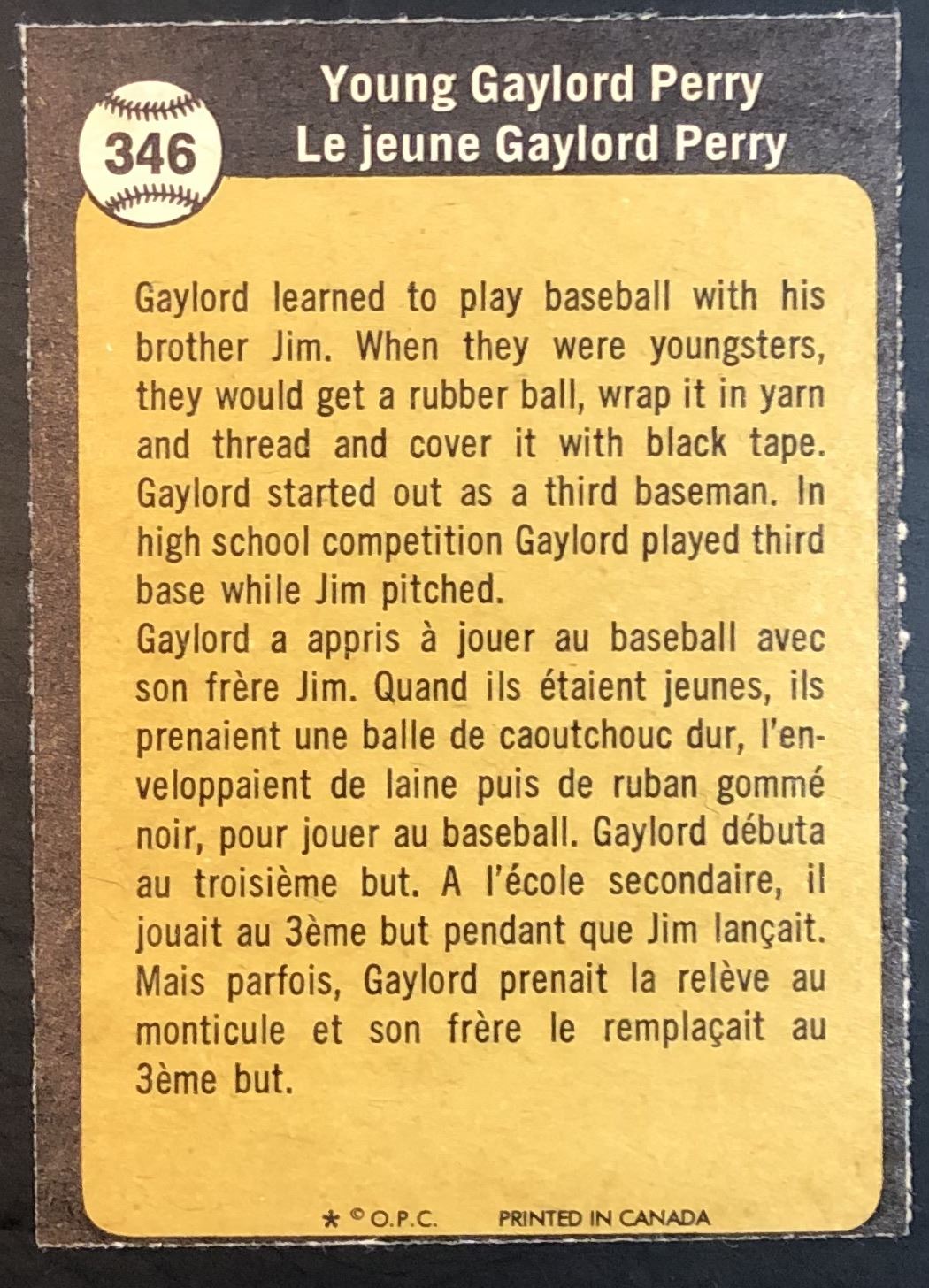 Card #346 MLB, baseball, vintage, OPC, hall of fame