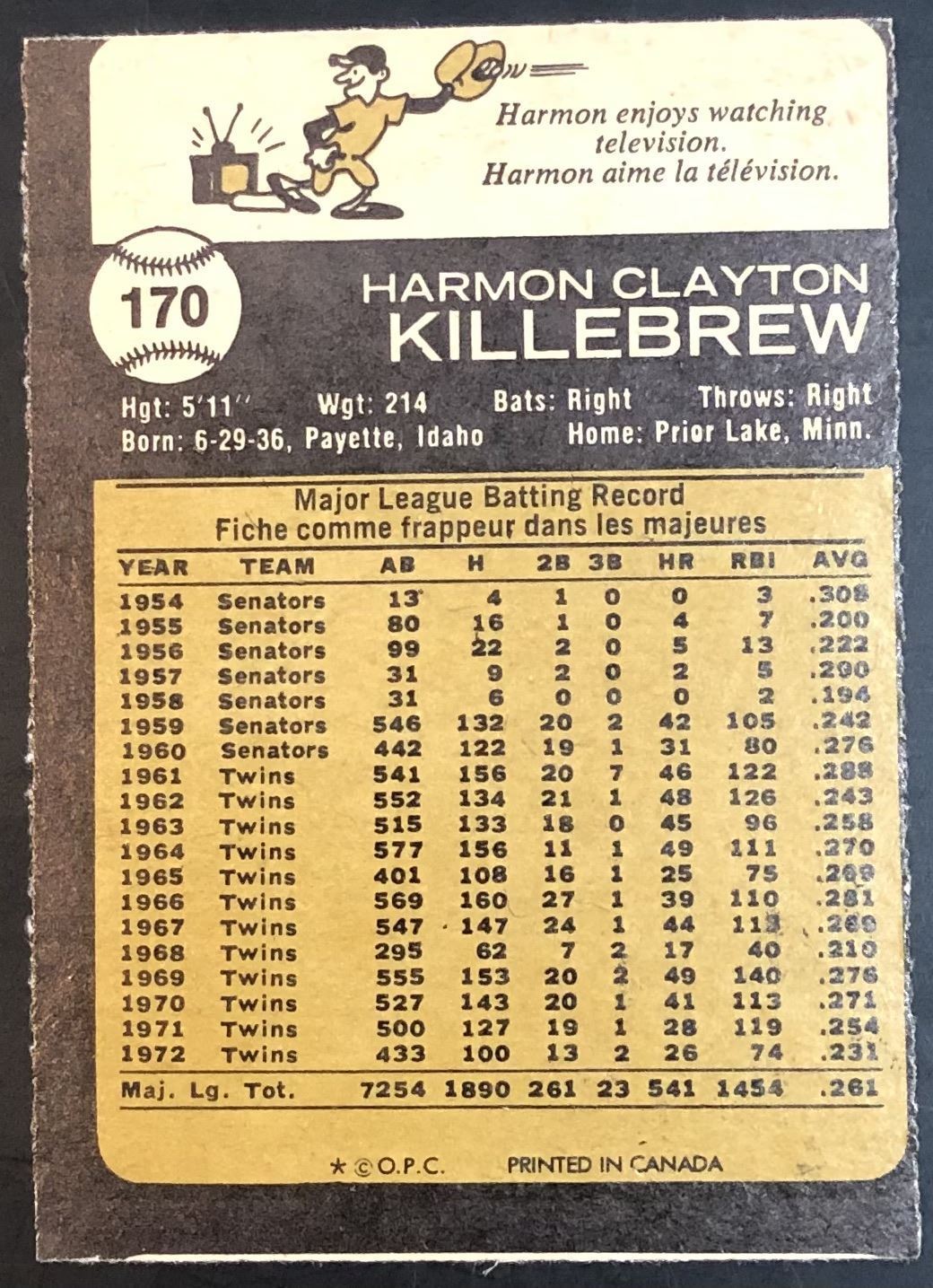 Card #170 MLB, baseball, vintage, OPC, hall of fame