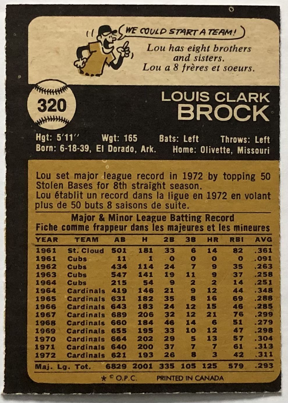 Card #320 MLB, baseball, vintage, OPC, hall of fame