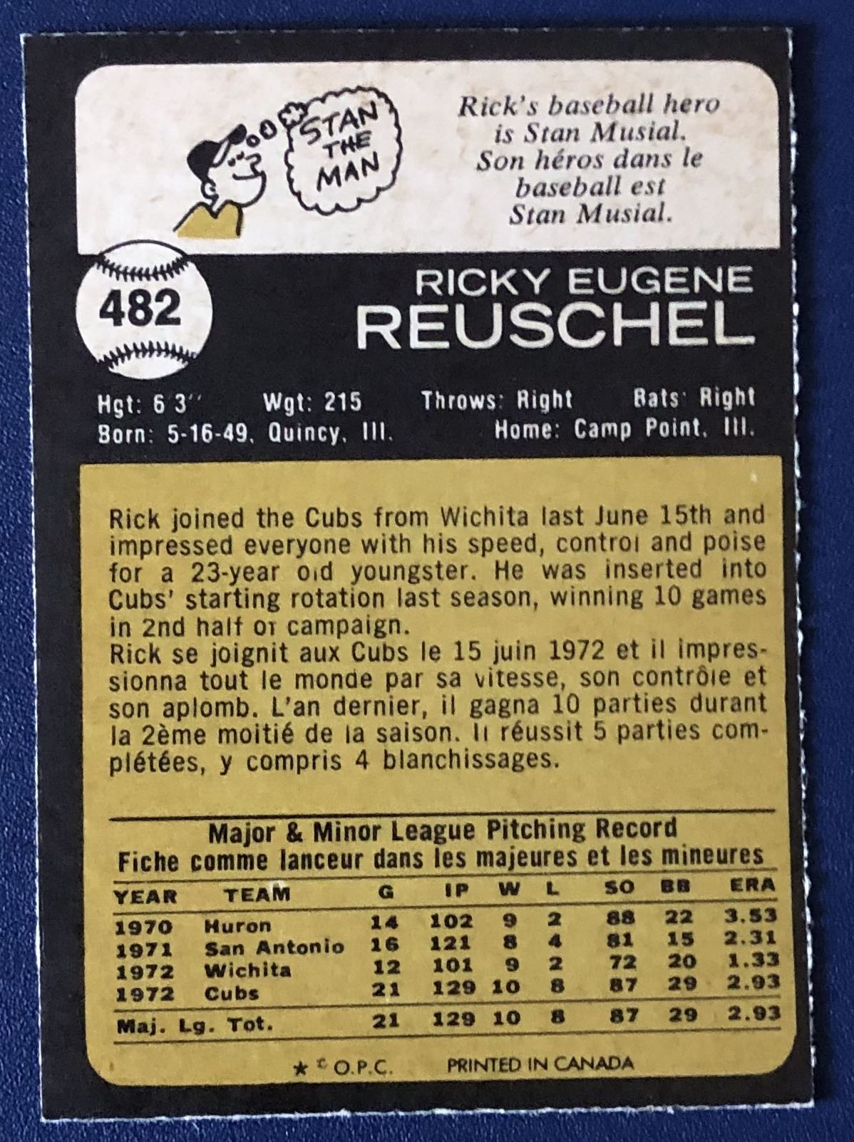 Card #482 vintage, MLB, baseball, rookie, OPC