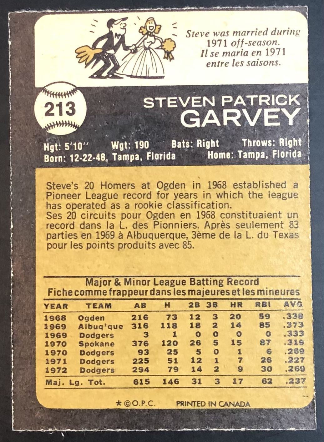 Card #213 MLB, baseball, vintage, OPC