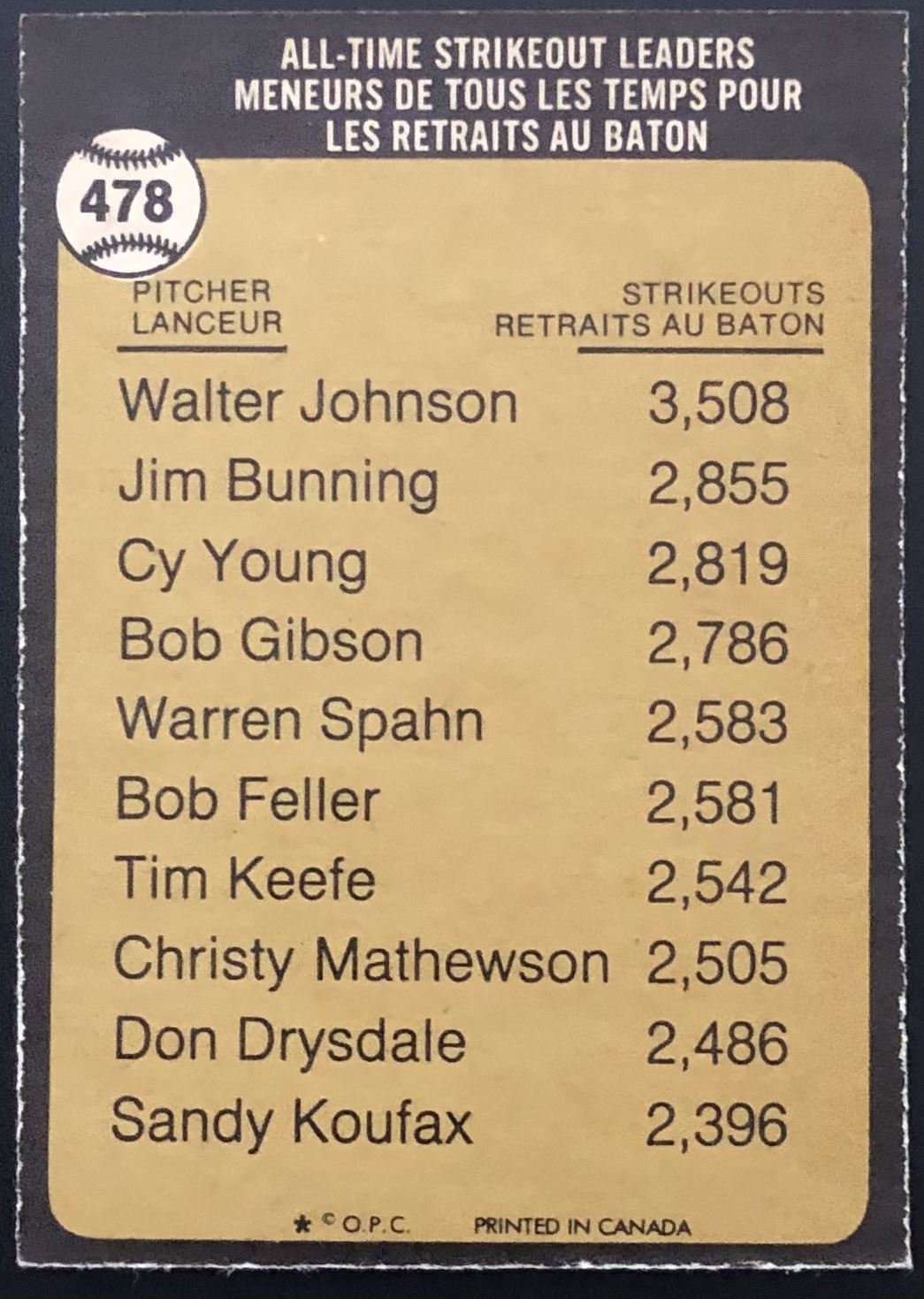 Card #478 MLB,baseball, vintage, hall of fame, OPC