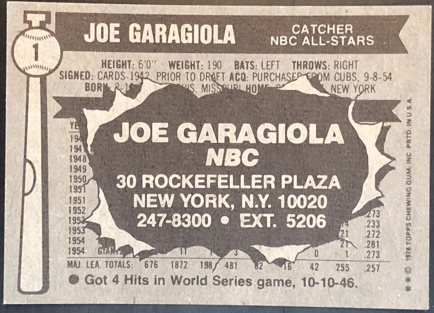Card #1 very rare, low print run for former player/broadcaster. Used as his 'buisness card' vintage, MLB, baseball
