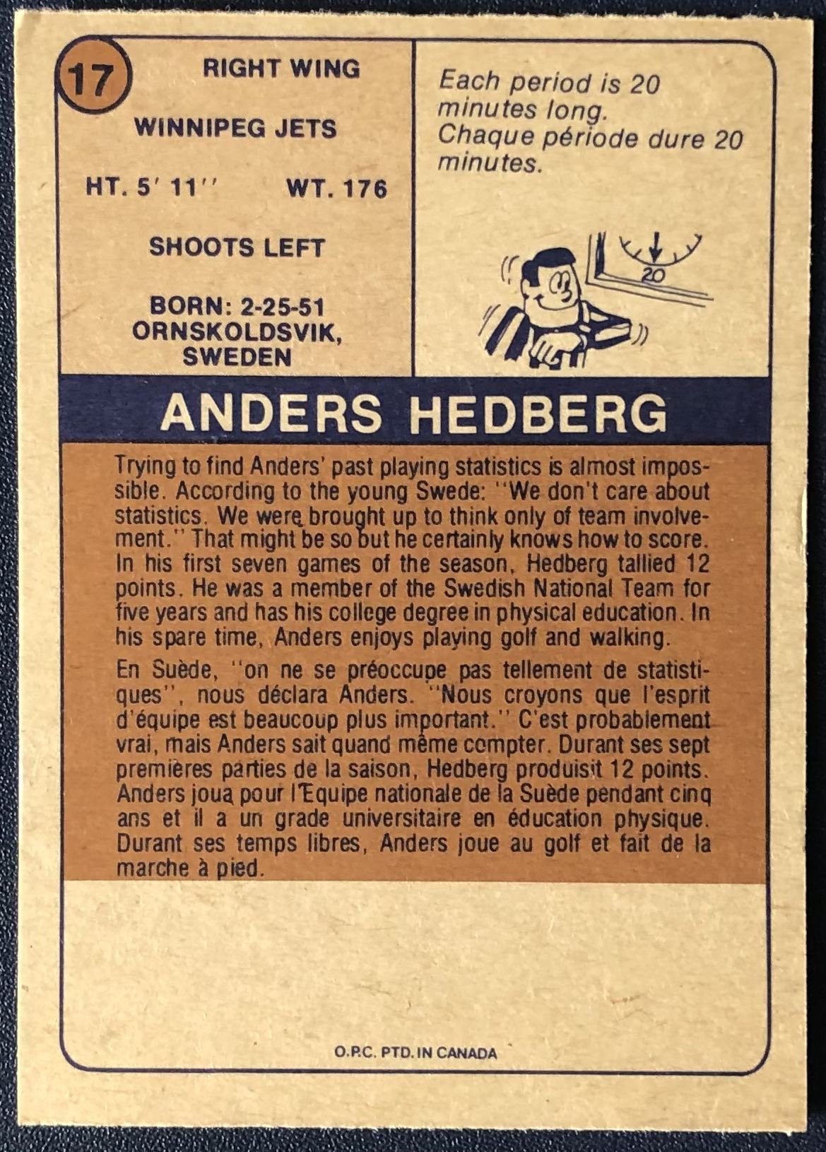 Card #17 vintage, hockey, WHA, OPC, rookie