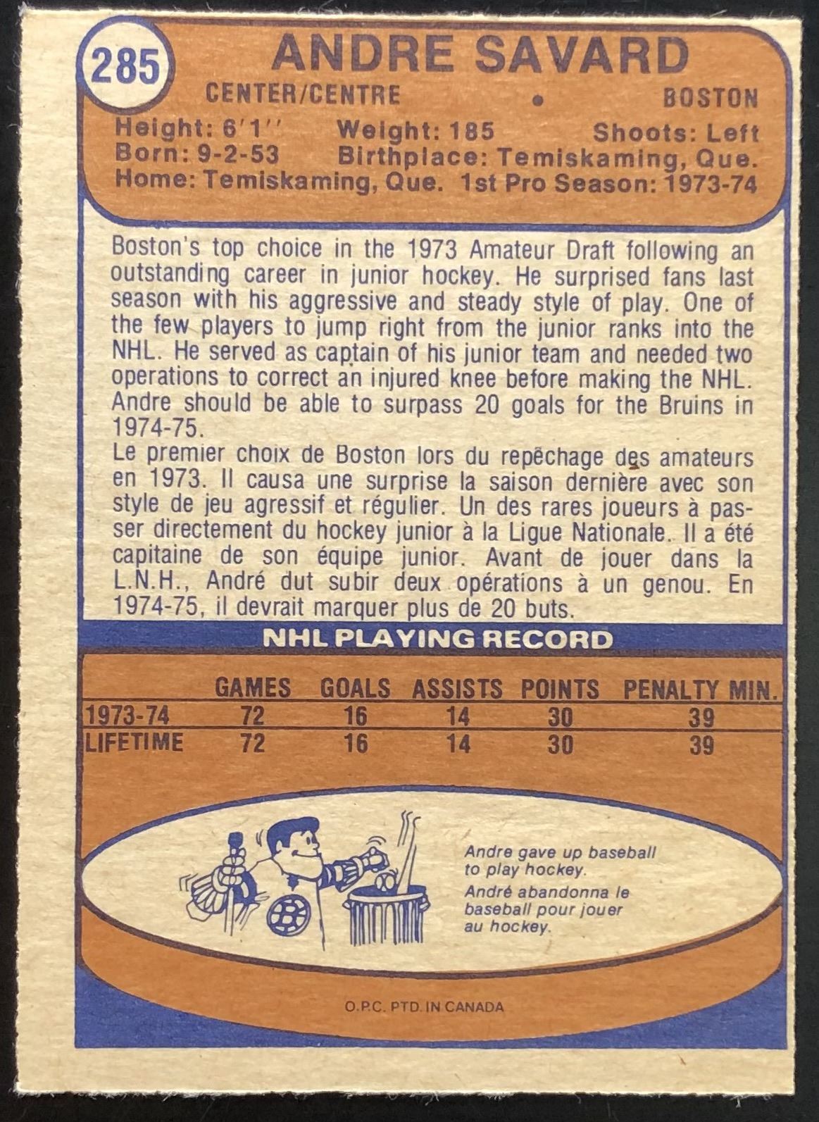 Card #285 OPC, vintage, NHL, hockey, rookie