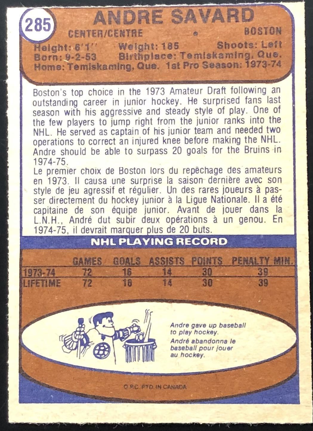 Card #285 NHL, hockey, OPC, vintage, rookie