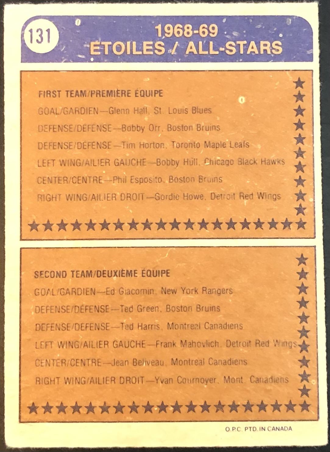 Card #131 NHL, hockey, vintage, hall of fame, OPC
