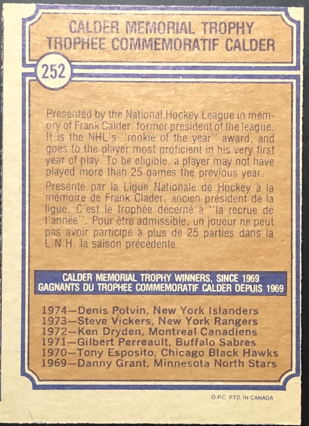Card #252 OPC, vintage, NHL, hockey, hall of fame